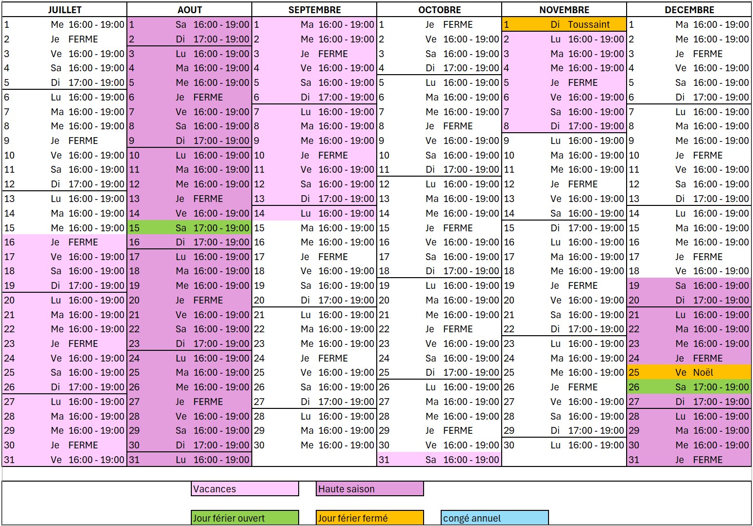Heures d’ouverure